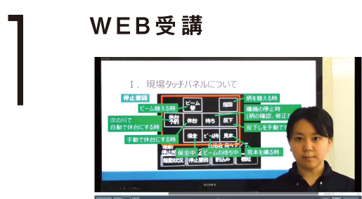 社内講師によるクラウドシステム型の受講。パソコン、タブレット、スマートフォン等、いつでもどこでも受講が可能