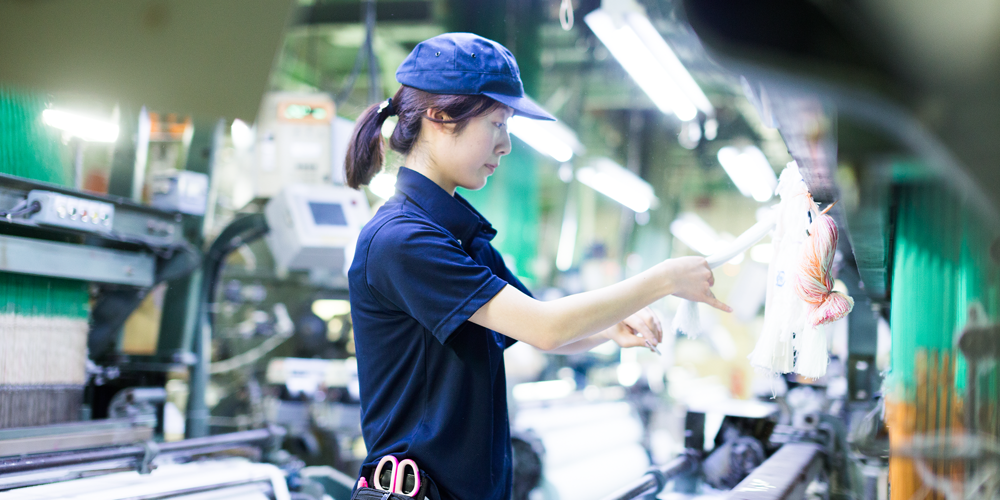 機織りの現場を見たんですよ。のべ繋ぎの現場です。